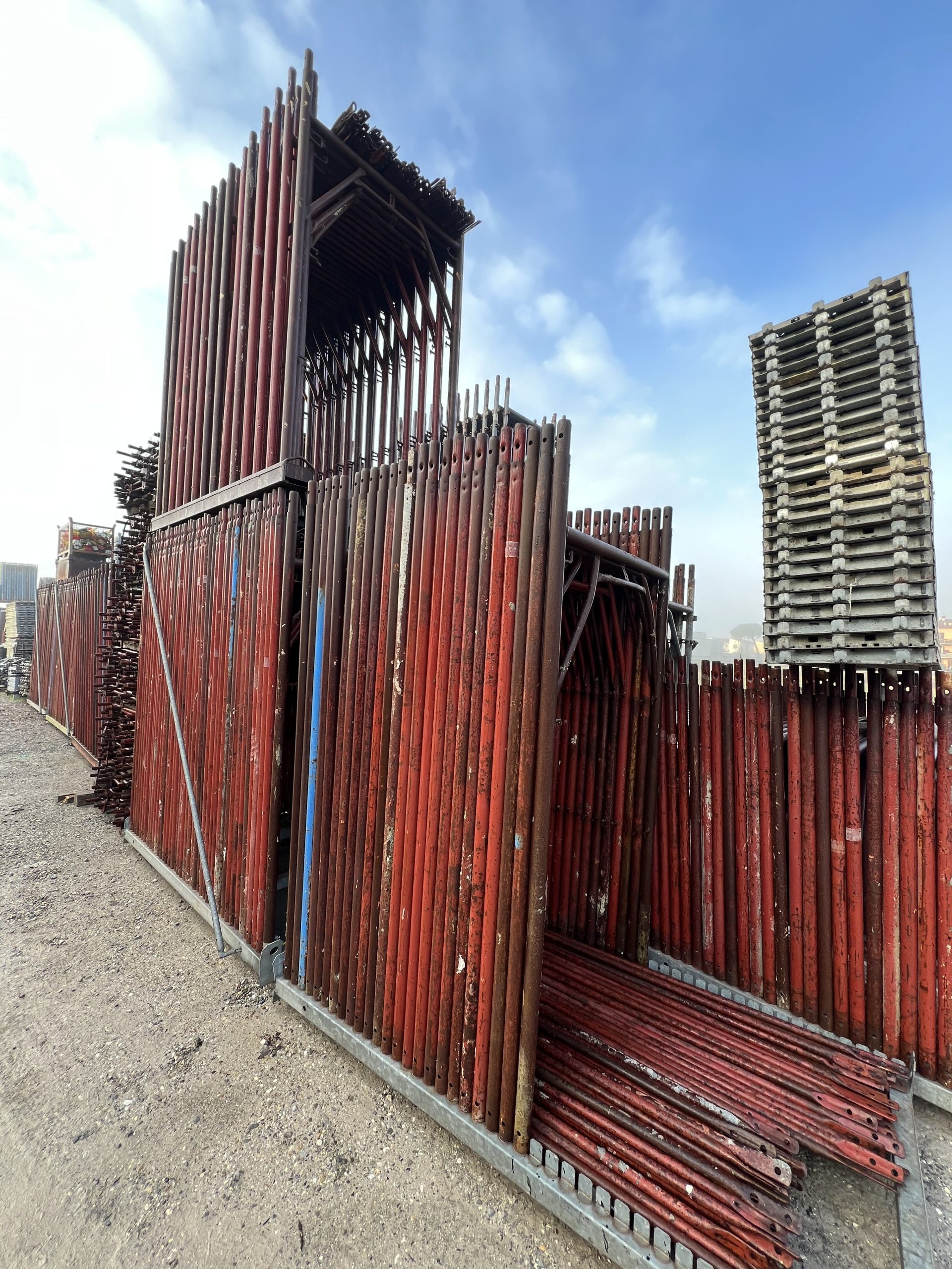 Ponteggio usato marca Dalmine modello Uniform verniciato completo di correnti, diagonali, tavole zincate e fermapiedi